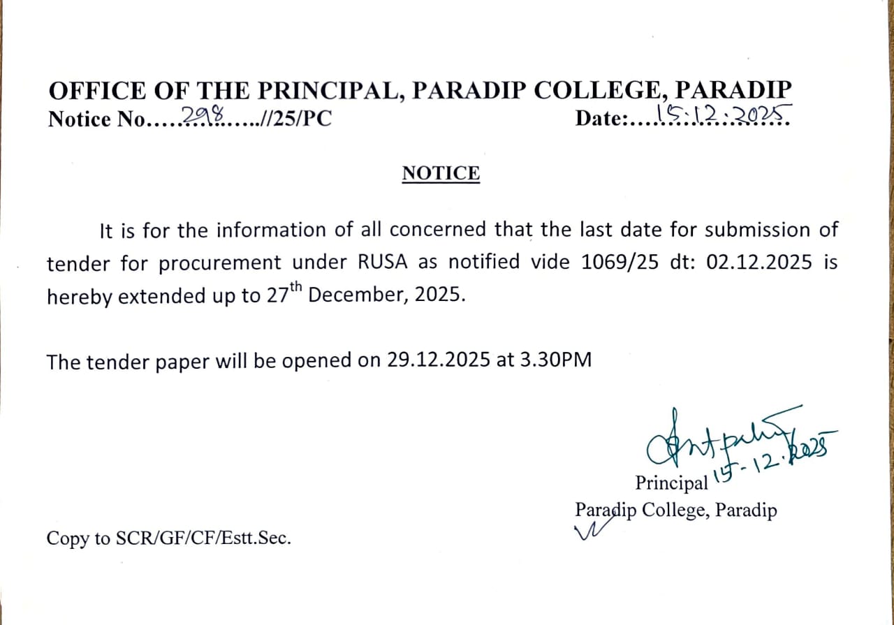| A hearty welcome to the official website of Paradip College, Paradip.Ever since 1975, this institution has grown up as a giant family of meritorious students, highly learned faculties, cordial staff and successful alumni. Paradip college has always tried its best to provide quality education and enhance the skills and qualities of its students. It strives for the comprehensive development of students so that they emerge with flying colours in every walk of life.